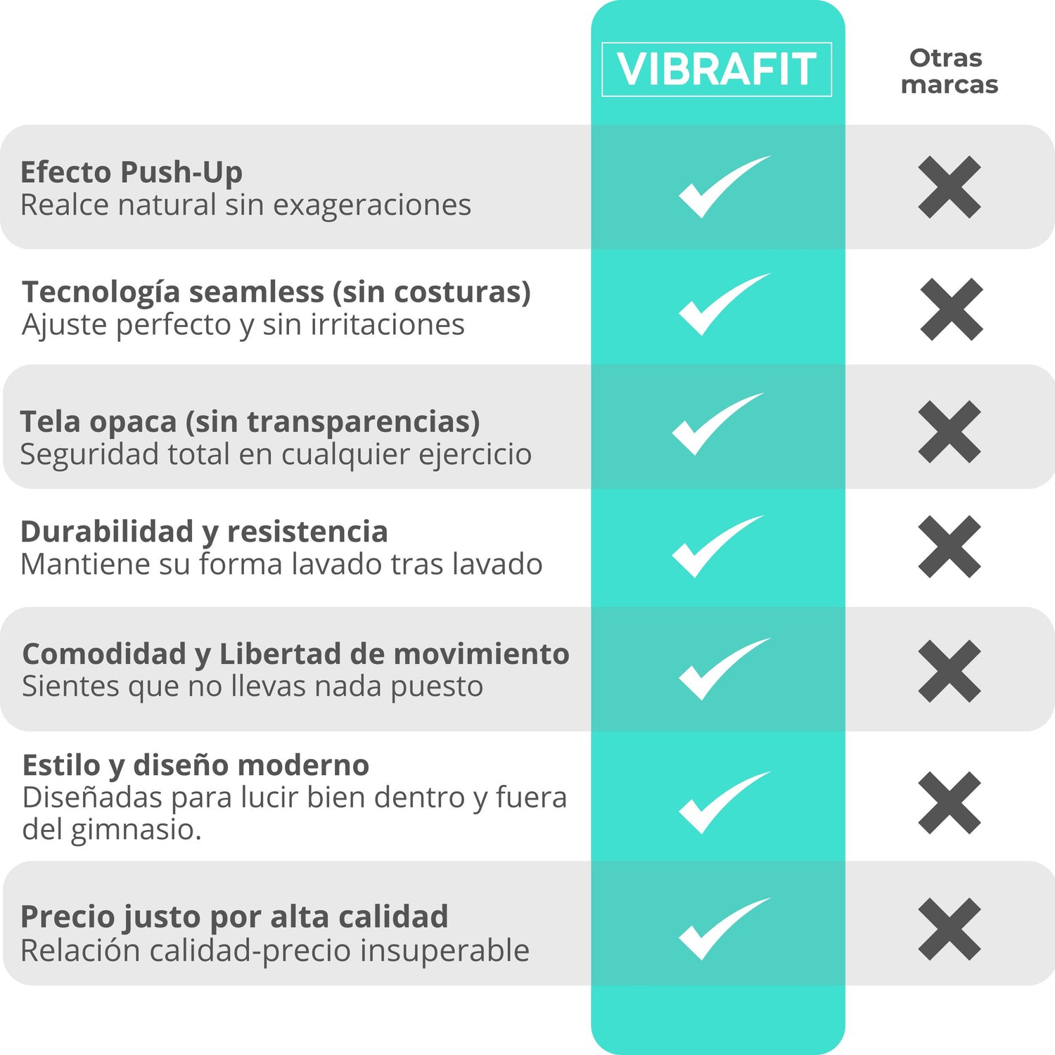 - Mallas push-up de alta compresión - Moldean tu silueta sin sacrificar libertad de movimiento.